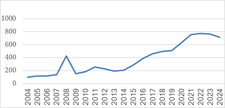 | Etats-Unis | 2024 | – 1 958,607 | -7,26 |